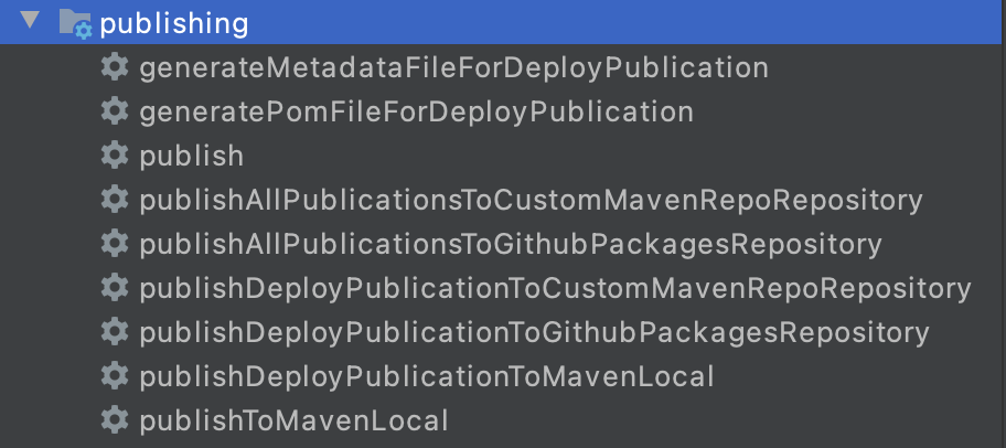 그림과 같이 gradle에 publishing 에 대한 부분이 생깁니다.