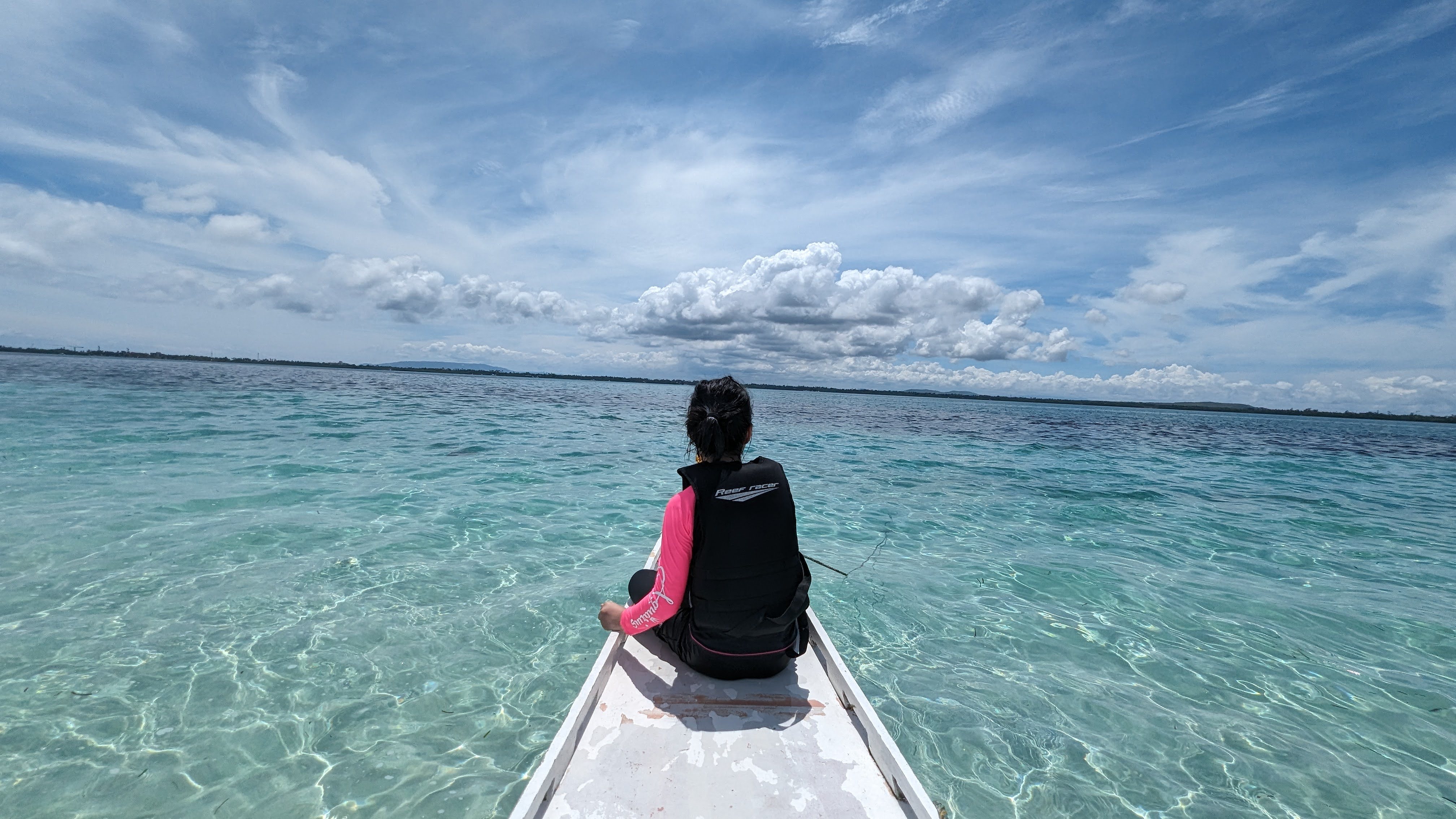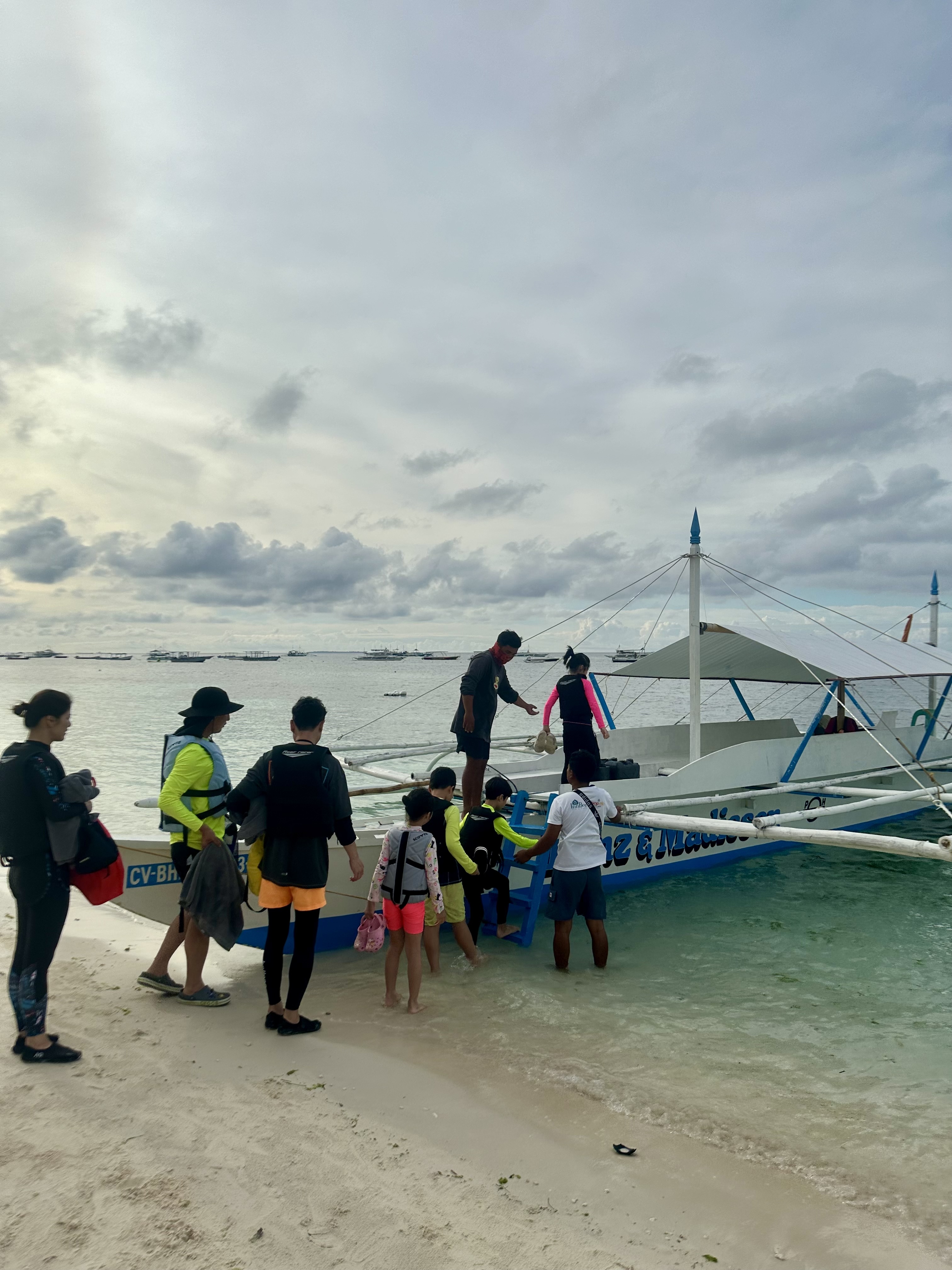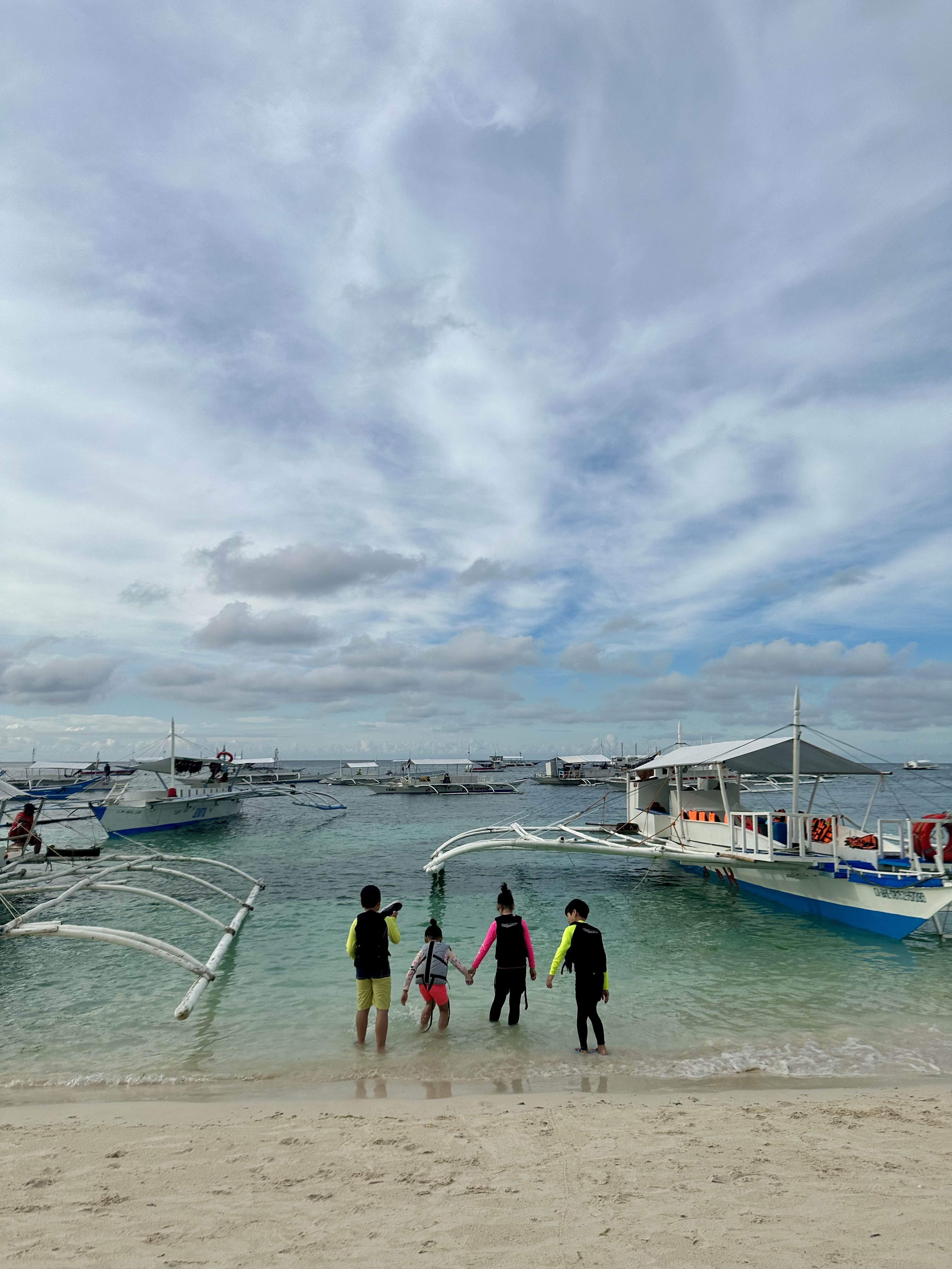 배를 바다 한가운대에 정박 시킵니다. 깊지 않아요.. 내리면 무릎 정도 깊이라서...이곳에서 섬 구경도 하고 아이들은 소라개? 도 잡아서 구경하고 조개도 구경합니다. 그리고 출발하기 전 배의 맨 앞에서 사진도 찍어 보고... 날시가 너무 좋아서인지 사진도 잘나오는거 같아요. 다른 블로그에서 여행하신분들 보면 배를 타고 이동하면서 맨 앞에서 사진도 찍고 영상도 찍고 하시던데, 아이들을 그렇게 해서 찍기엔 위험하니 이렇게라도 추억을 남기는게 어딘가 싶습니다. 이렇게 버진아일랜드까지 투어를 끝내고 다시 알로나비치로 처음 출발했던 장소로 이동하면 투어가 끝나게 됩니다.