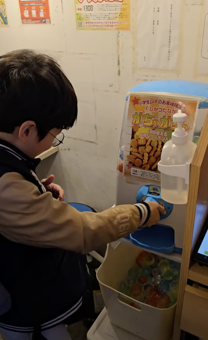 셀프 계란말이 시켜서 먹고,.. 쿠시카츠도 좋았는데 사진이 없는 게 아쉽습니다.. 계산대 옆에 가차도 있는데,. 먹으면서 생각한 건 이제 가게 안에서도 가차가 있네??라고 했는데,.. 계산하고 나니 사장님이 아이들에게 코인을 하나씩 주시더군요.. 그래서 뽑기도 해 보고... 다음에 도쿄를 간다면 이곳 쿠시카츠집은 또 가고 싶다는 생각이 들었습니다.