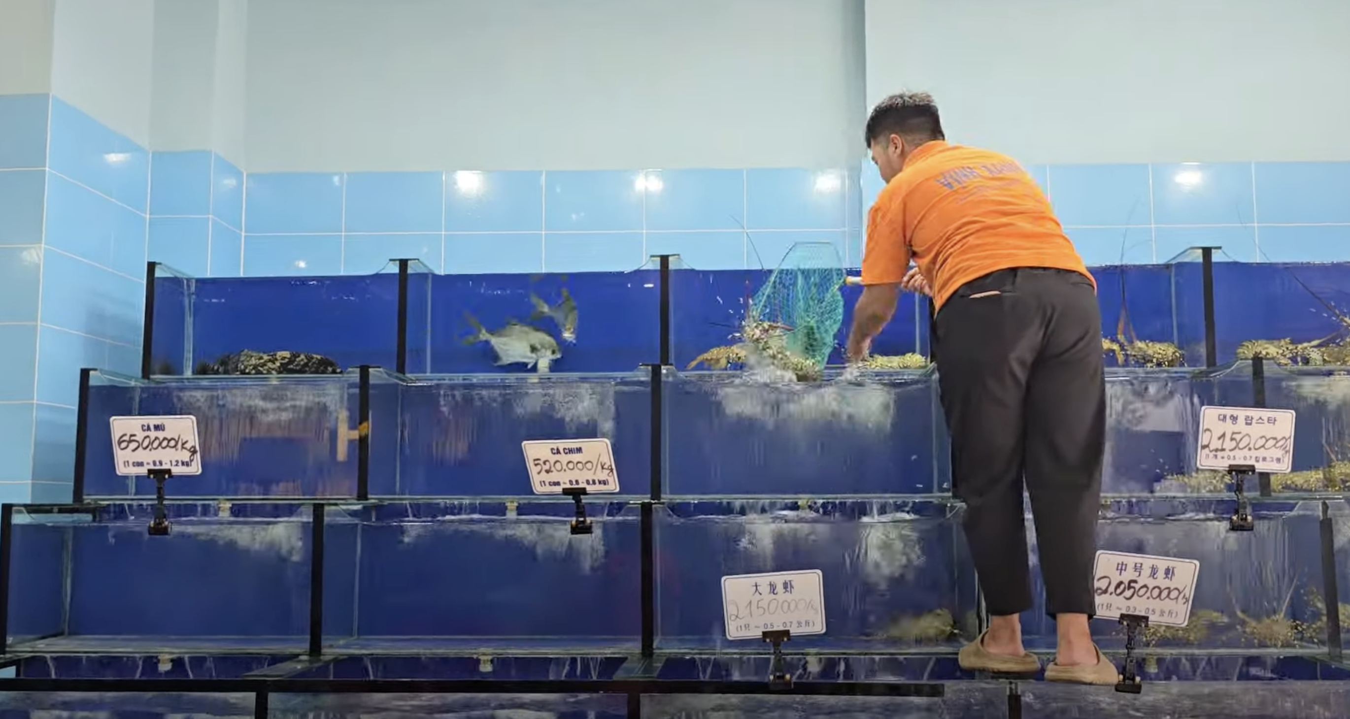 주문을 하면 직접 수조에서 꺼내서 무게를 재고 OK 하면 요리가 시작되요.'