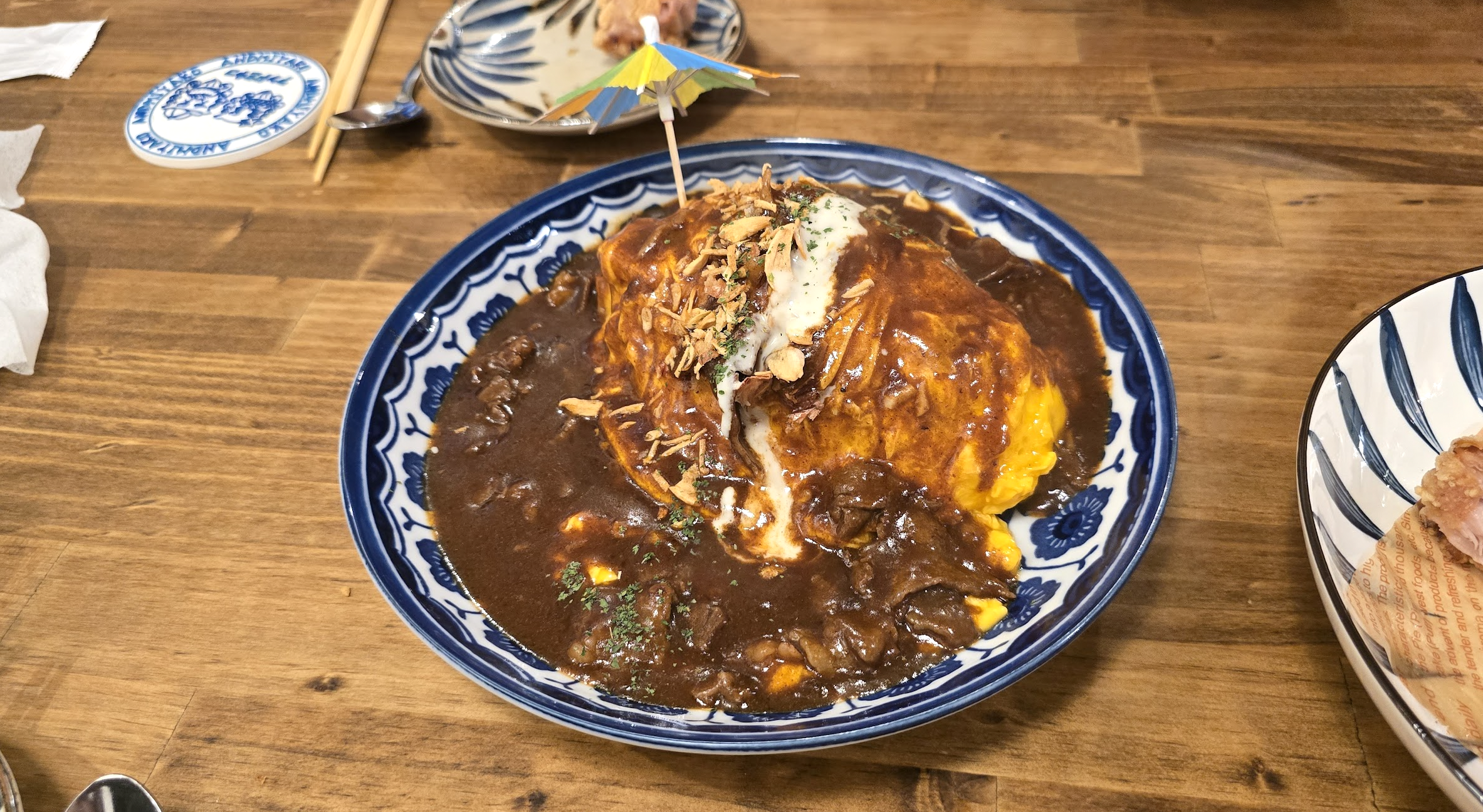 미야코지마 여행 중 방문했던 식당 중에서, 오므라이스가 맛있는 이자카야를 찾고 있다면 이곳을 추천드려요.
