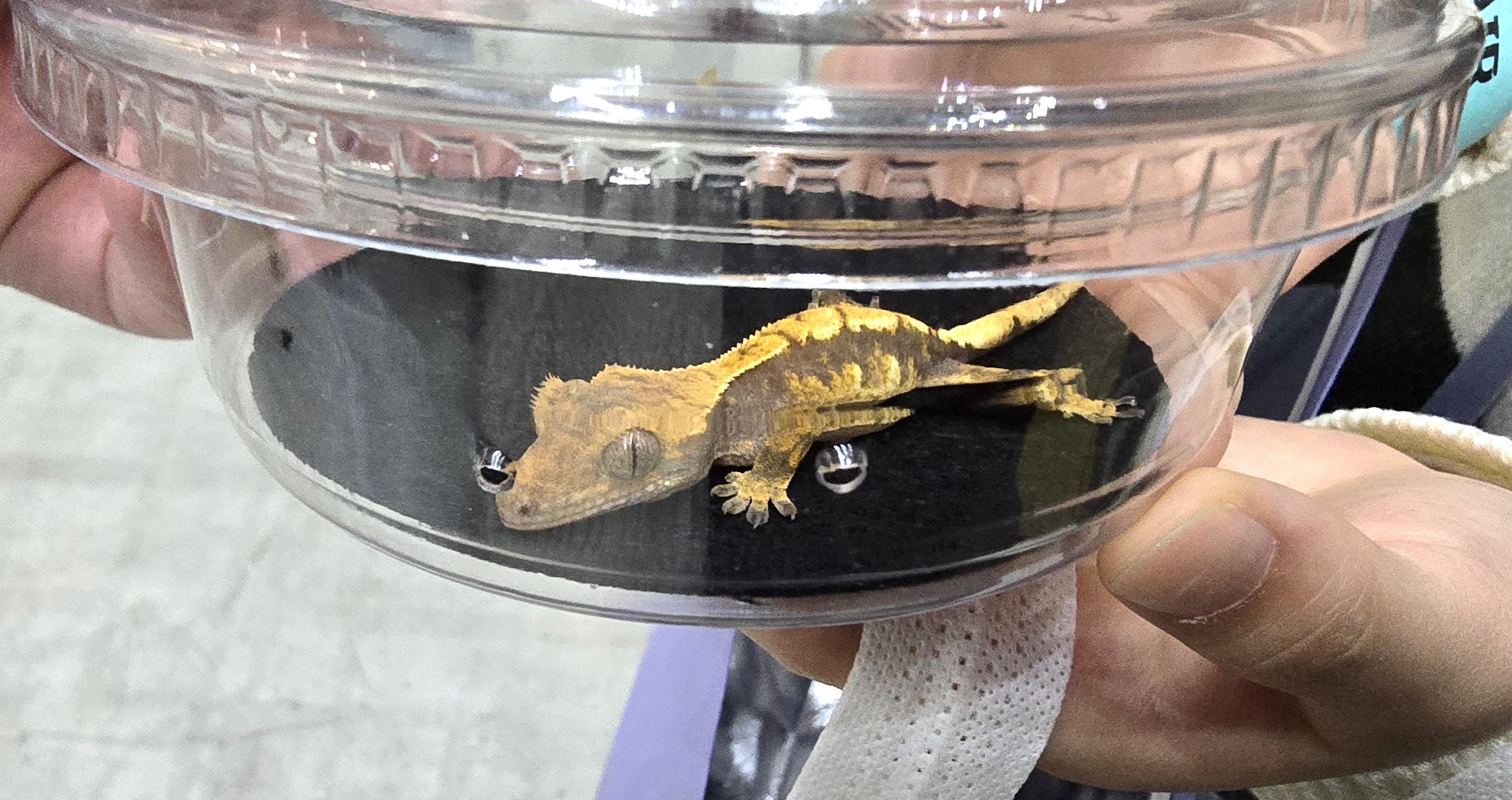 첫째 아이가 랩타일 페어를 가자고 계속 얘기를 하던 차,. 송도에서 페어를 하는 것을 알게 되어 방문을 하게 되었습니다. 가기 전 아이에게 가서 구경만 하는 거고 입양하거나 하진 않을 거야,. 키우지 않을 거니 그렇게 알고 가자... 하고 송도로 출발했습니다. 집안에 동물을 키우면 신경 쓸 부분들도 많고 관리도 해야 해서... 아무것도 모른채 방문을 하니.. 도마뱀 종류가 이렇게 많고 다양할 줄은 몰랐습니다. 더군다나 가격도 천차만별이더군요. 전시회 라고 하기보다는 도마뱀을 분양하고 다양한 용품들을 판매하는 행사였던 거 같습니다. 그리고 아이는 도마뱀을 보면서 계속 키우고 싶다고... 그러면 너무 비싼 가격이 아닌 적당한 선에서 타협을 보고 한 마리 분양을 받았습니다. 크기는 어른 손가락 정도의 크기였고..